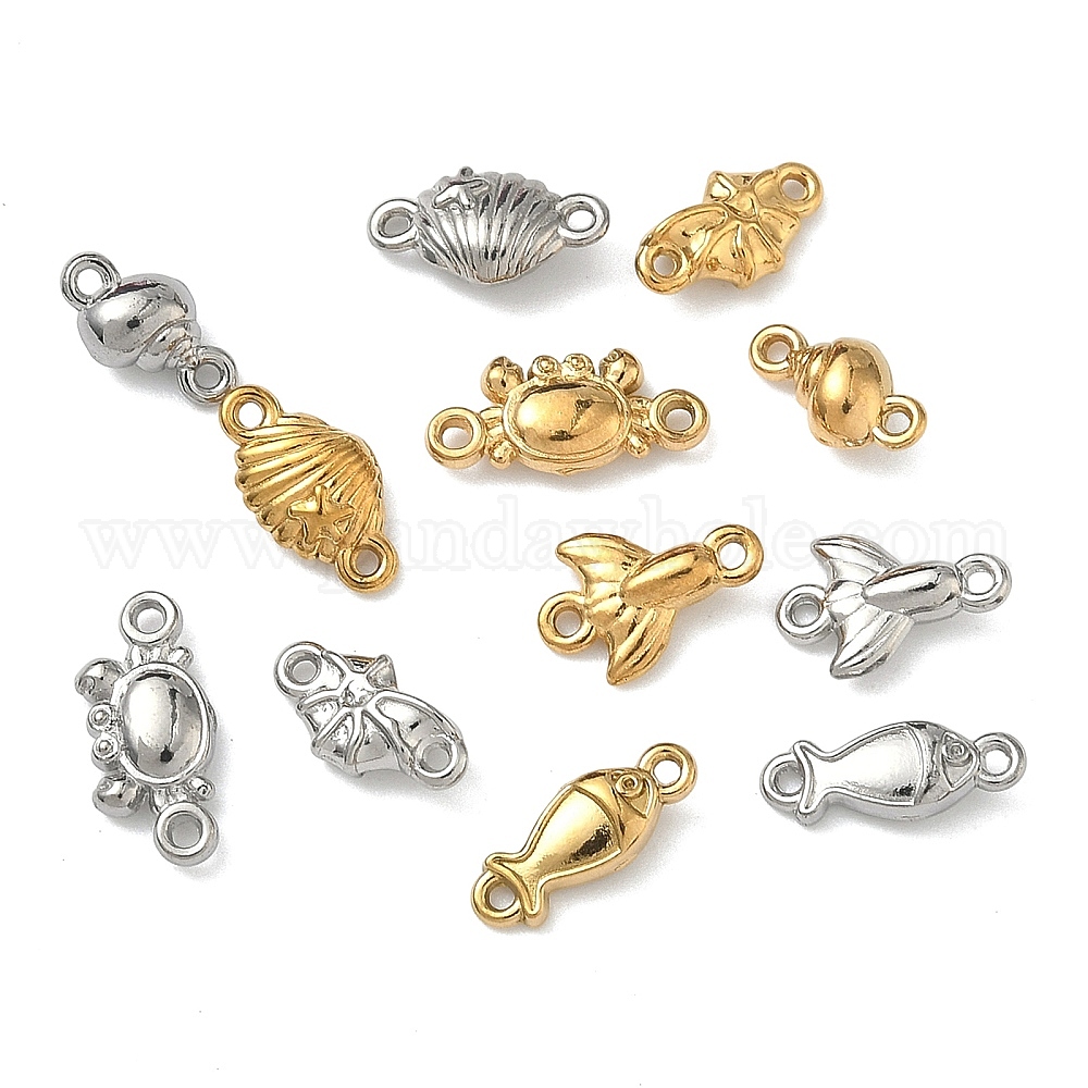 Океан 304 подвески-соединители из нержавеющей стали, настоящее 18k позолоченное/цвет нержавеющей стали (03916W)