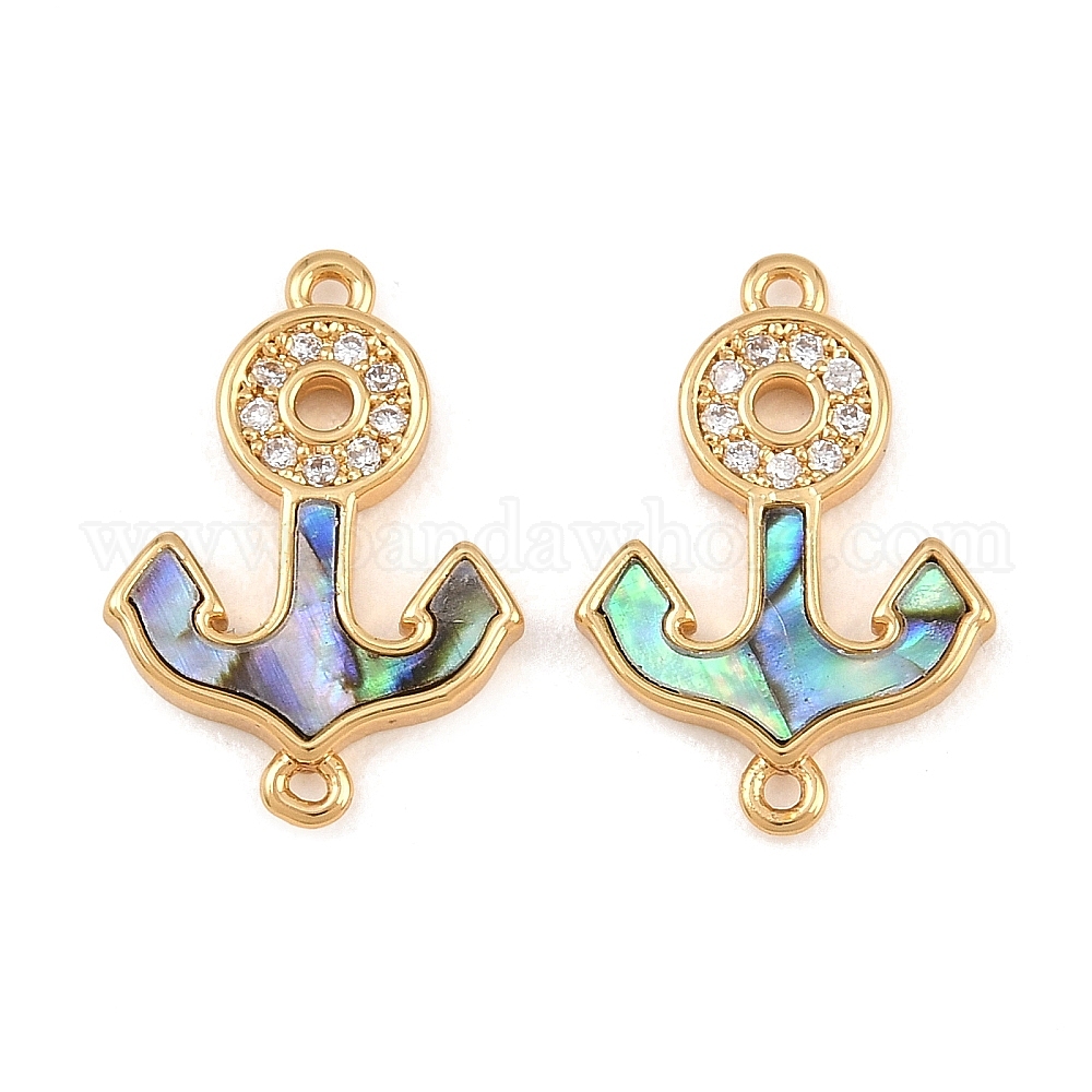 Подвески-соединители из натуральной ракушки пауа, с латунными микропаве прозрачных кубических цирконий