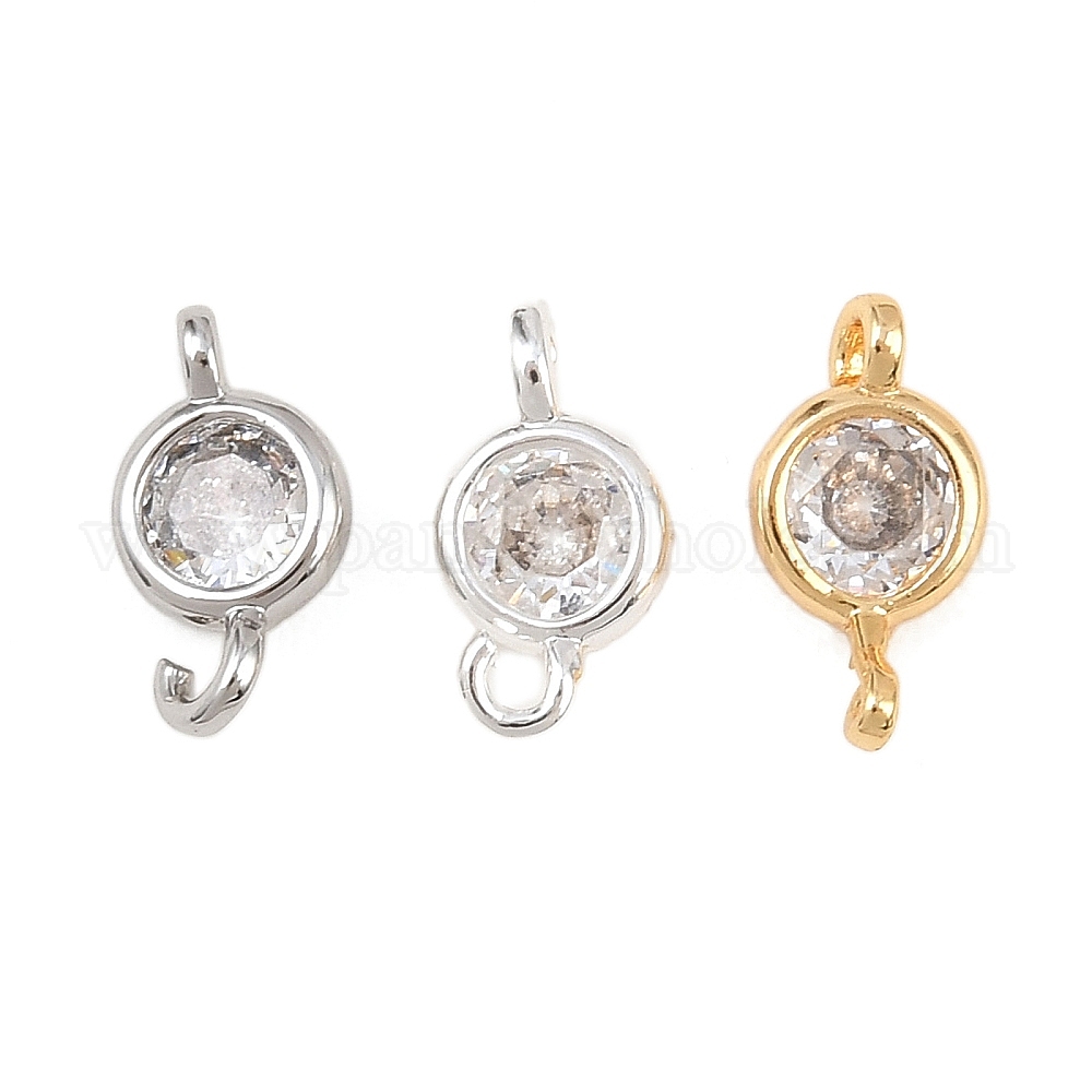 Латунные подвески из прозрачного кубического циркония, плоские круглые ссылки