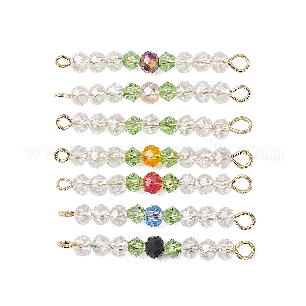 7 шт. 7 цвета гальванизированного стекла граненые рондели и биконусы с бусинами-соединителями, с 304 двойными петлями из нержавеющей стали, золотые
