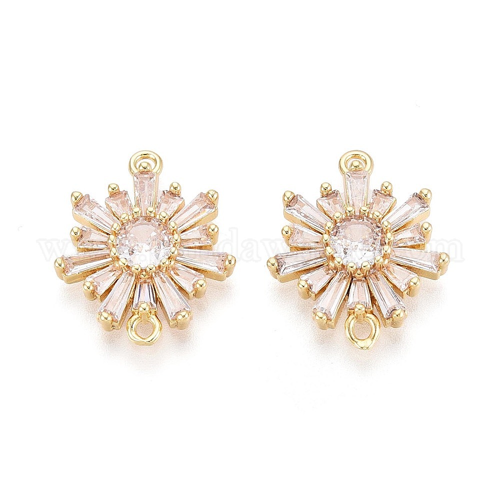 • Золотой Латунные подвески из прозрачного кубического циркония, цветок ссылки, долговечный, золотые, 16x19x4 мм, отверстие : 1.2~1.4 мм