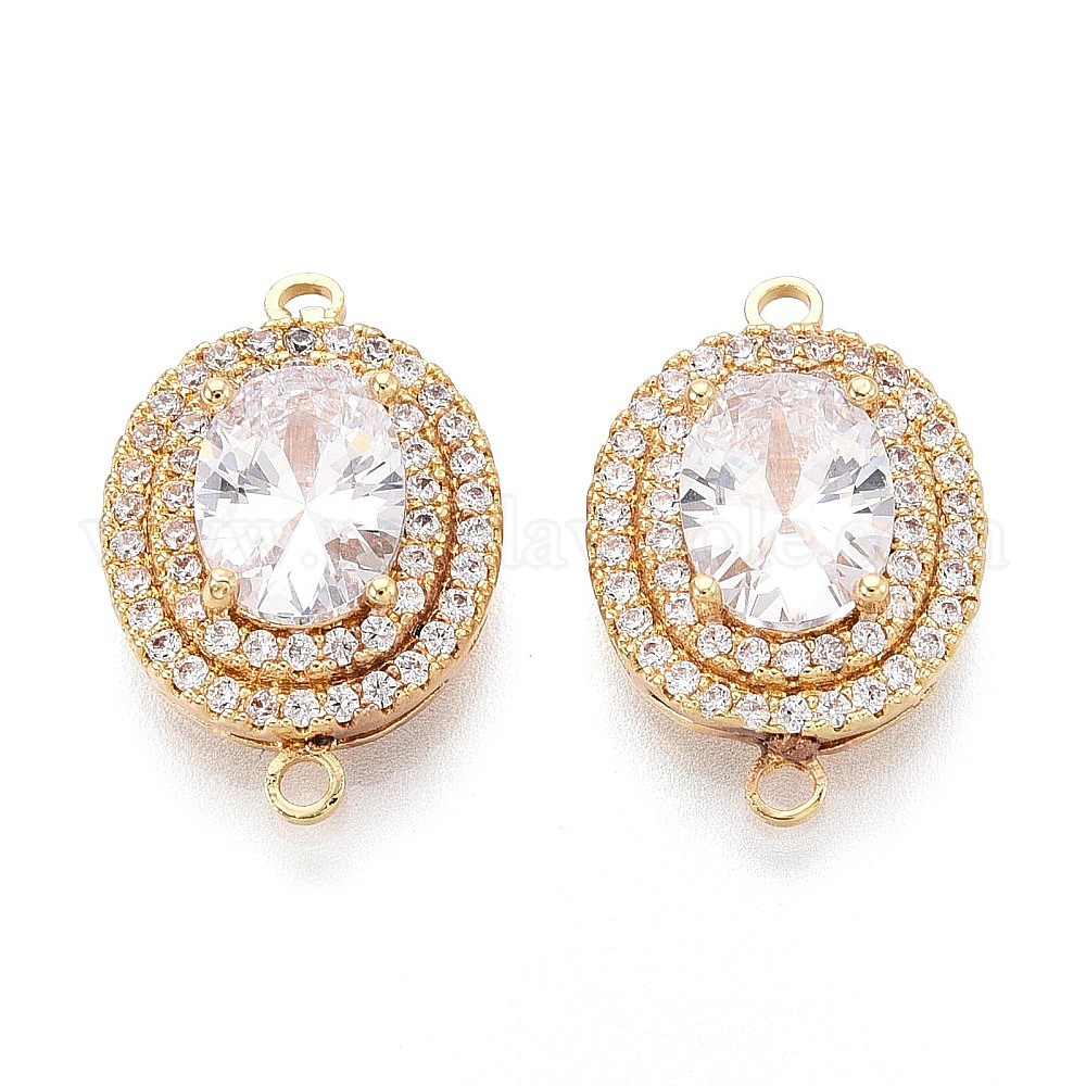 • Золотой Латунные подвески из прозрачного кубического циркония, овальные связи, долговечный, золотые, 13x19.5x6 мм, отверстие : 1.5~1.6 мм