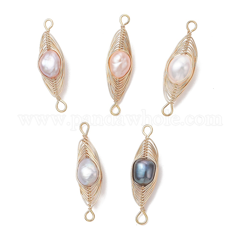 Подвески-соединители в форме конского глаза из натурального культивированного пресноводного жемчуга с медной проволокой, смешанные окрашенные и неокрашенные