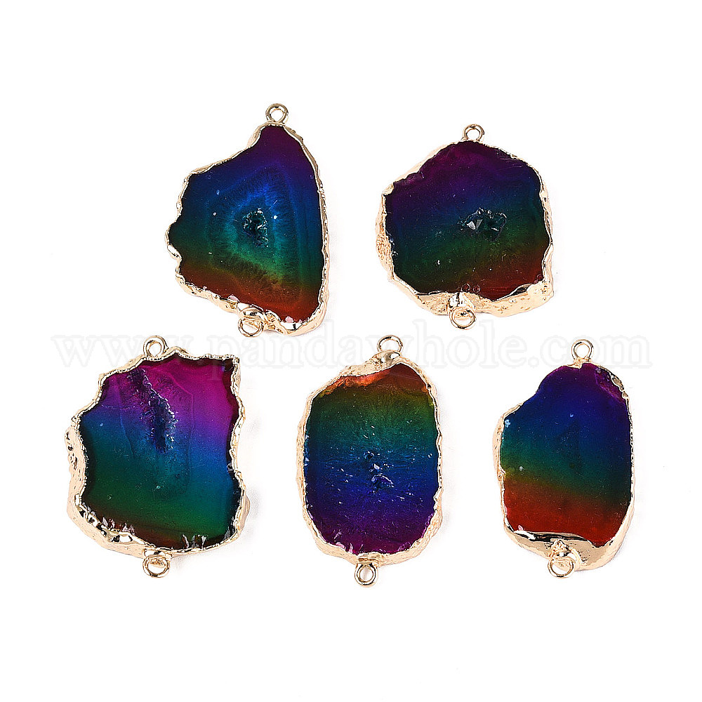 Подвески-звенья/соединители из натуральных агатовых самородков, окрашенных распылением, с золотым латунным краем