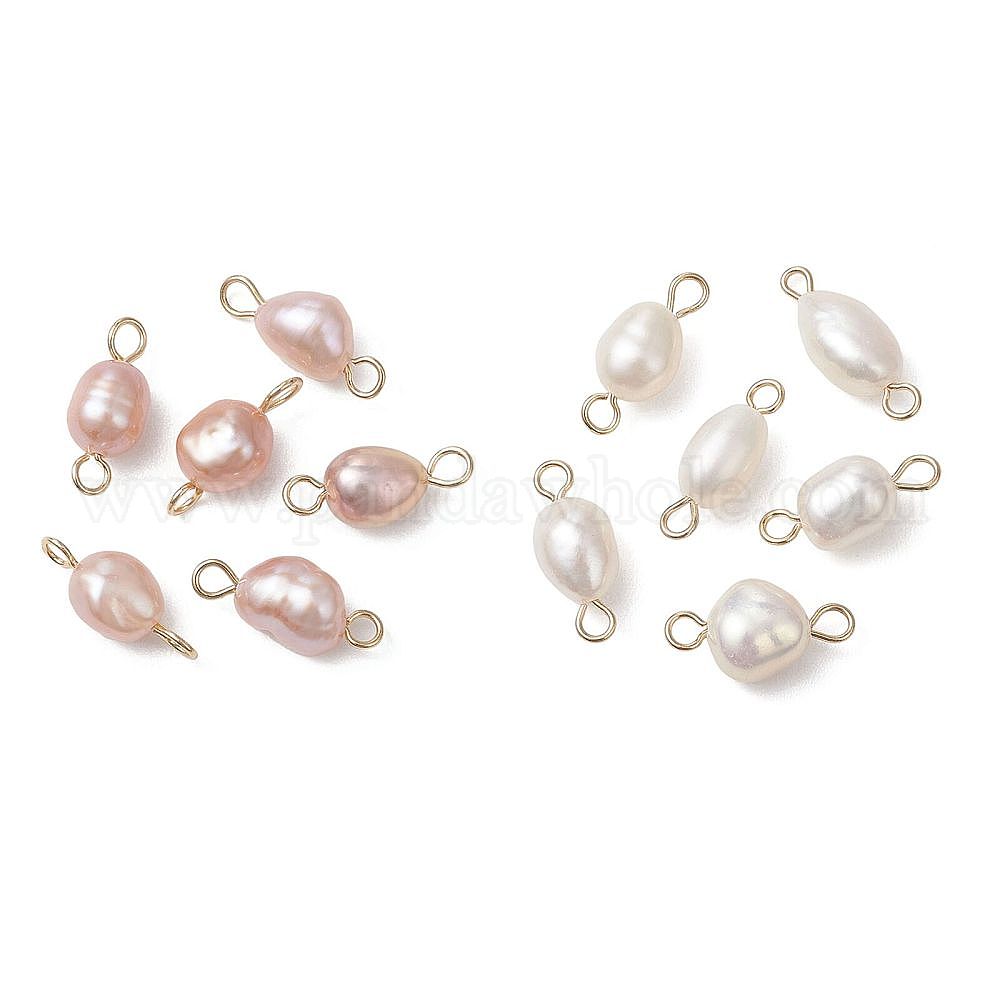 2 шт. 2 цвета натуральный жемчуг картофельные звенья соединительные подвески, с 304 двойными петлями из нержавеющей стали, золотые