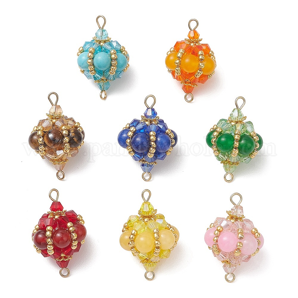 Подвески-фонарики с круглыми и стеклянными бусинами из драгоценных камней, с обмоткой из медной проволоки, золотые
