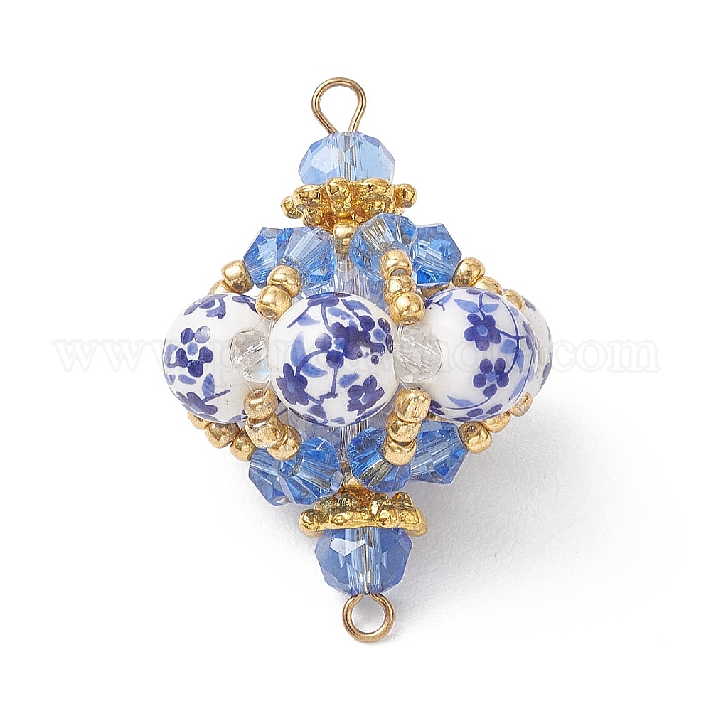 Восточный сине-белый фарфоровый фонарь из бусин, соединительные подвески., со стеклянными бисеринами