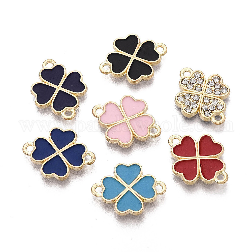 Подвески-коннекторы в виде клевера из сплава ко Дню Святого Патрика, с односторонним стразом и односторонним эмалевым покрытием, клевер ссылки, золотой свет