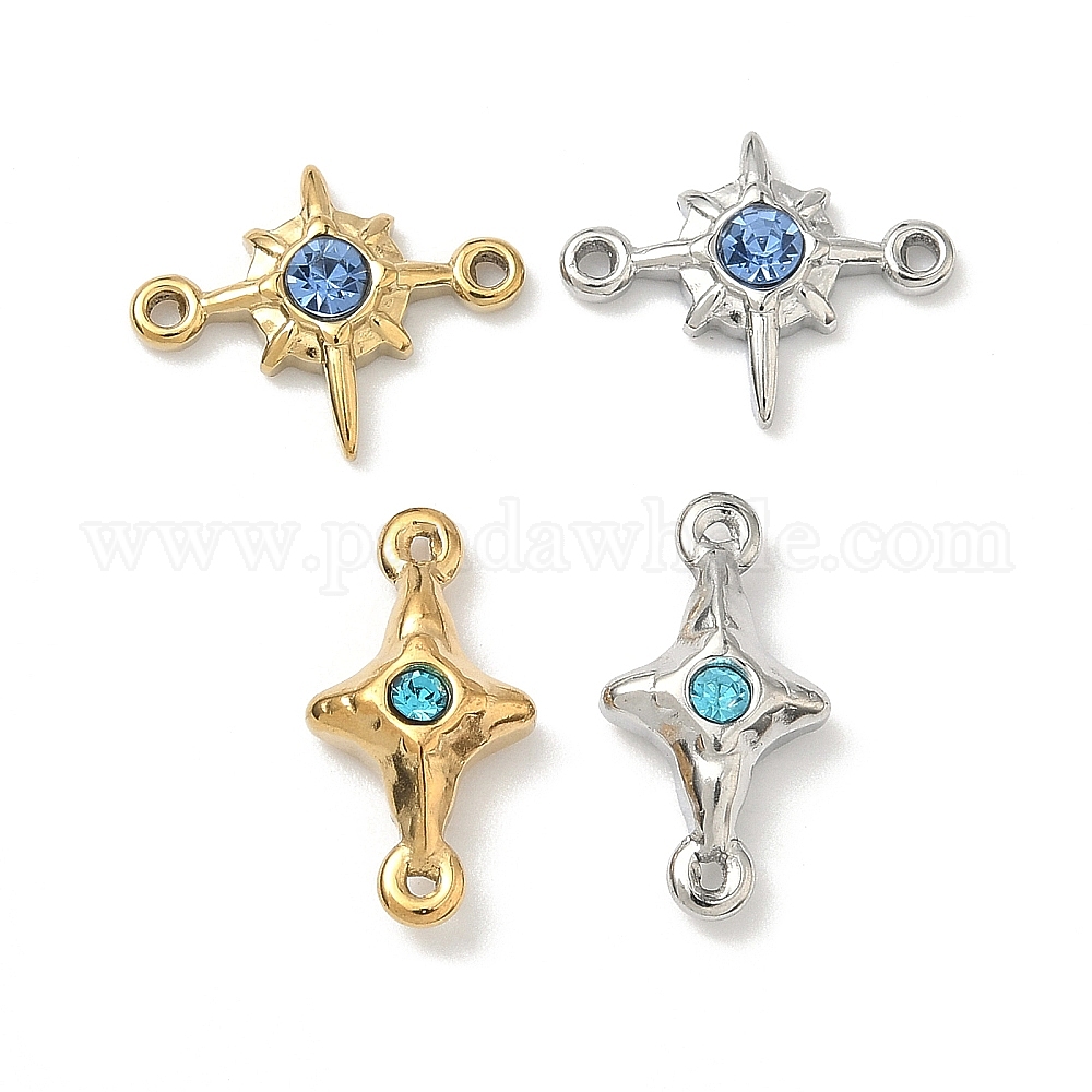 • Настоящее золото 18K 304 Соединительные подвески из нержавеющей стали с аквамариновыми стразами, звездные ссылки, ионное покрытие (ip), реальный 18 k позолоченный, 17x9x4 мм, отверстие : 0.8 мм