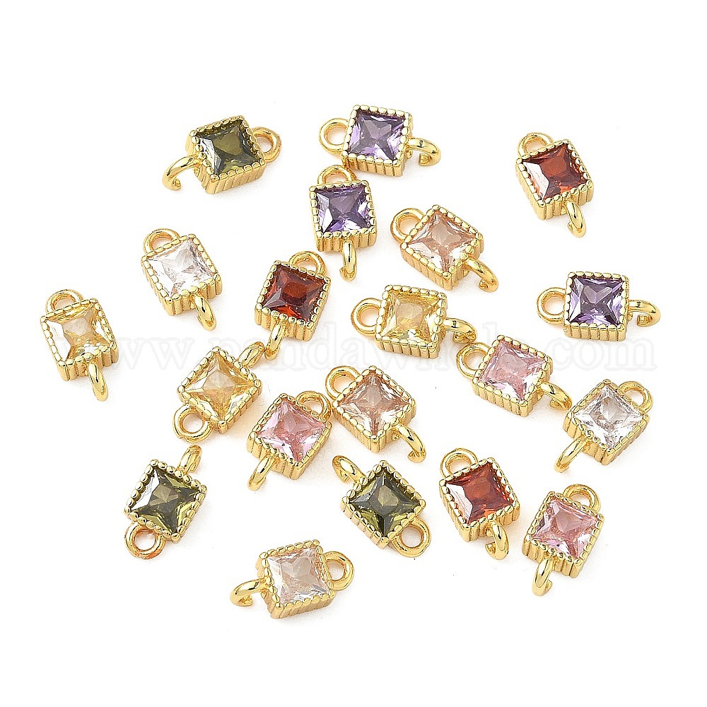 Шармы-соединители из латуни с паве из кубического циркония, квадратные ссылки, реальный 18 k позолоченный (039WSX)