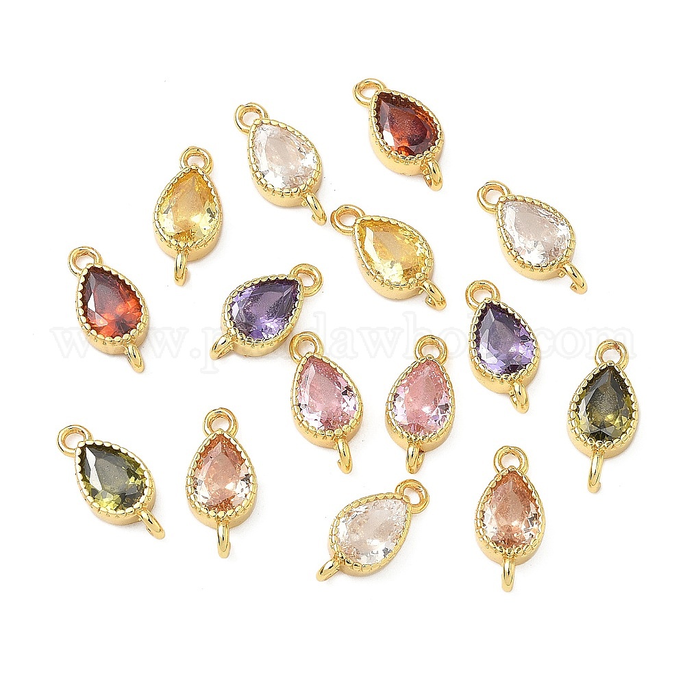 Шармы-соединители из латуни с паве из кубического циркония, слезные ссылки, реальный 18 k позолоченный
