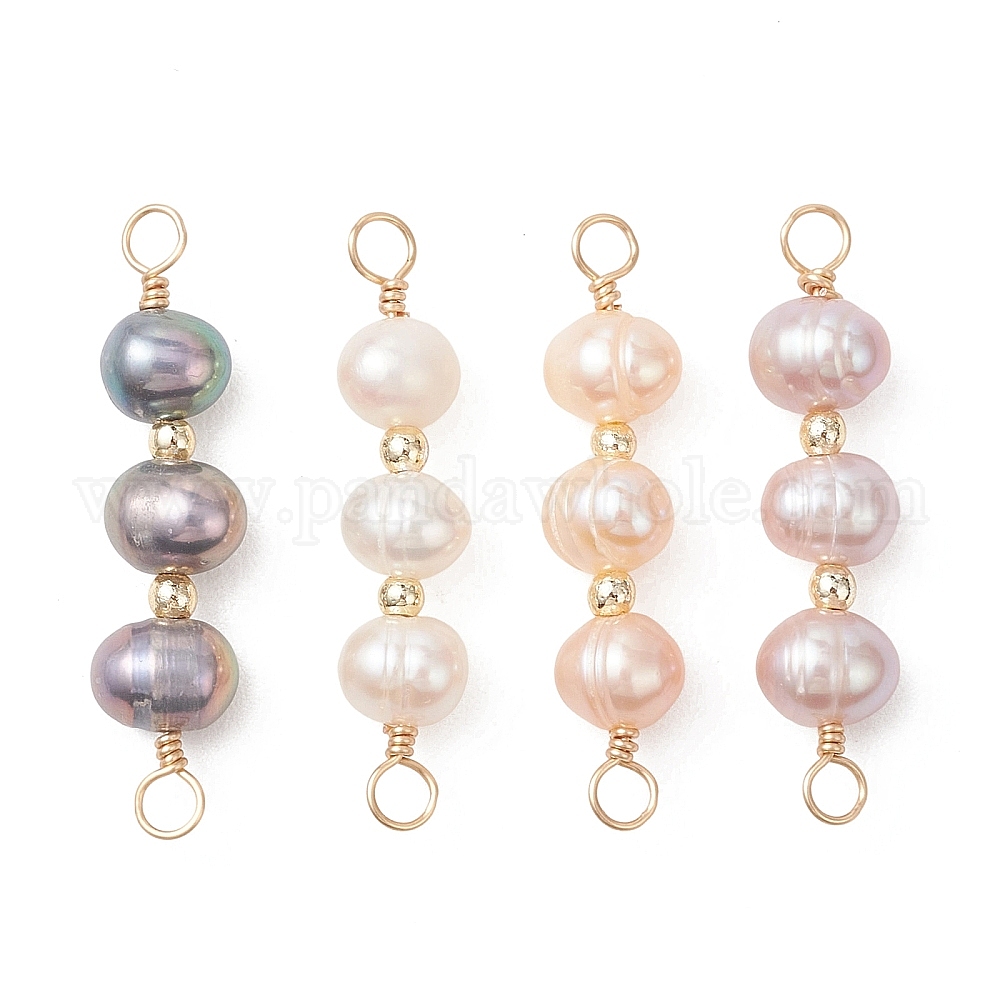Подвески-коннекторы из натурального культивированного пресноводного жемчуга в форме картофеля, с экологически чистыми петлями из медной проволоки, золотые