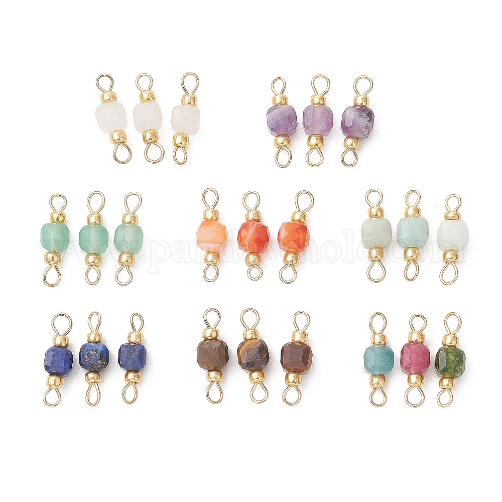 Натуральные ограненные кубические подвески из смешанных камней, натуральные цветочные амазонит, аметист, зеленый авантюрин, полосатый агат, лазурит, тигровый глаз, разноцветный турмалин и розовый кварц, золотые