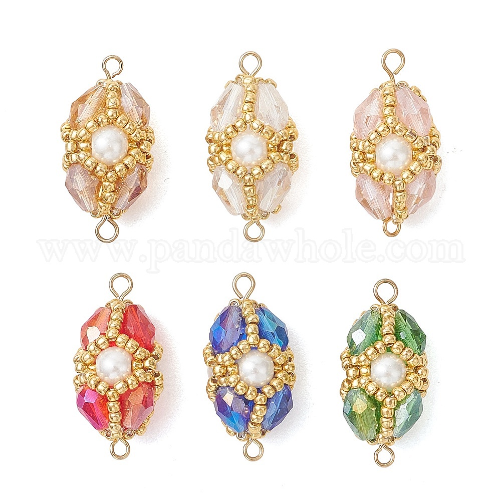 6шт. 6 цвета стеклянные овальные соединительные подвески из бусин, со стеклянными бисеринами, золотые