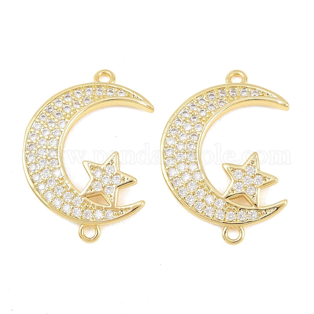 • Настоящее золото 18K Латунные микропаве прозрачные кубические цирконии луна звезда соединительные подвески, долговечный, стойки покрытие, без свинца и без кадмия, реальный 18 k позолоченный, 31x22x2 мм, отверстие : 1.8 мм