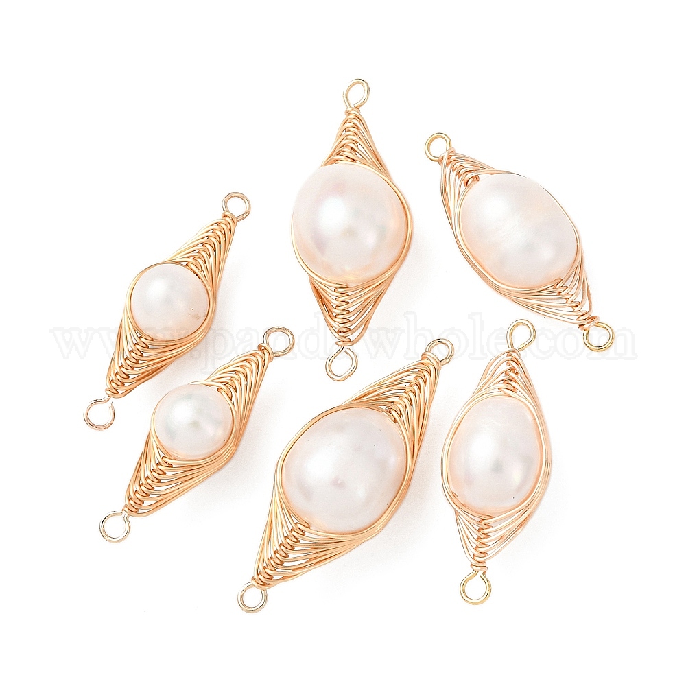 Медные звенья в форме ёлочки, обмотанные проволокой из натурального жемчуга, соединительные подвески в виде картофельных звеньев, долговечный, белые