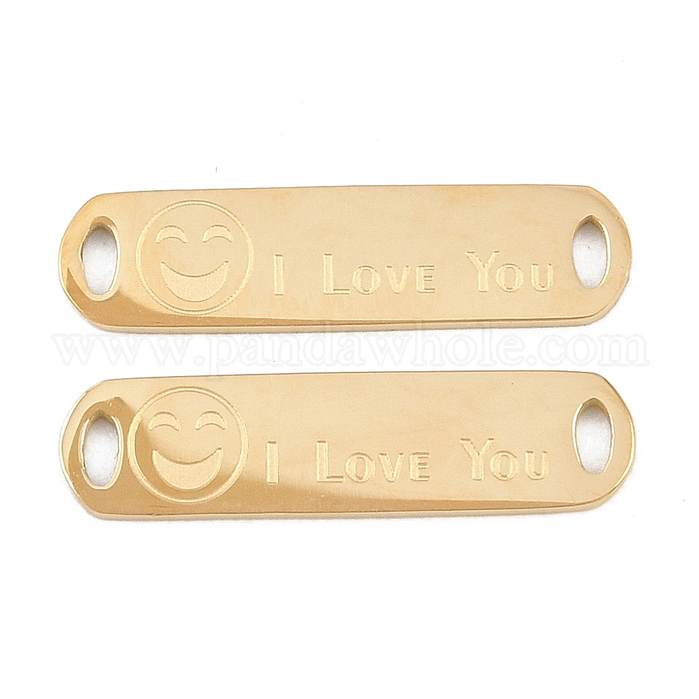 • Золотой 304 подвески из нержавеющей стали, овал с улыбающимся лицом и надписью «Я люблю тебя», золотые, 20x5x1 мм, отверстие : 2x1 мм