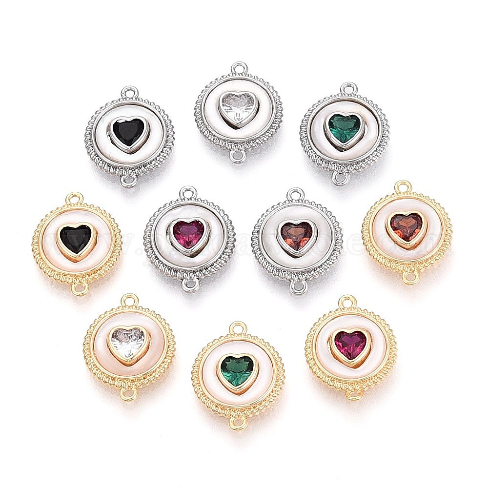 Подвески из латуни с инкрустацией кубическим цирконием и соединительными элементами в виде ракушек., плоский круглый с сердечками