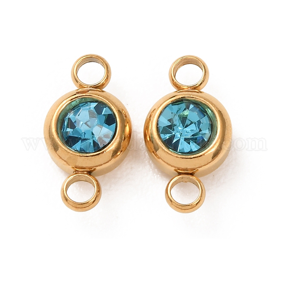 • Индиколит 304 стразы и соединители из нержавеющей стали, плоско-круглые, золотые, ионное покрытие (ip), Indicolite, 12x6.5x4 мм, отверстие : 2 мм