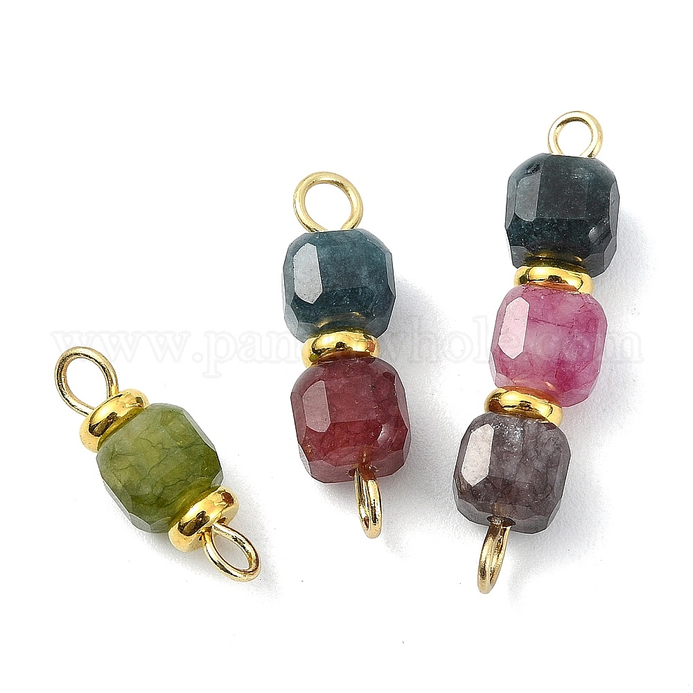 3шт. 3 стили натуральный многоцветный турмалин граненые кубические звенья из бисера соединительные подвески, с 304 фурнитурой из нержавеющей стали