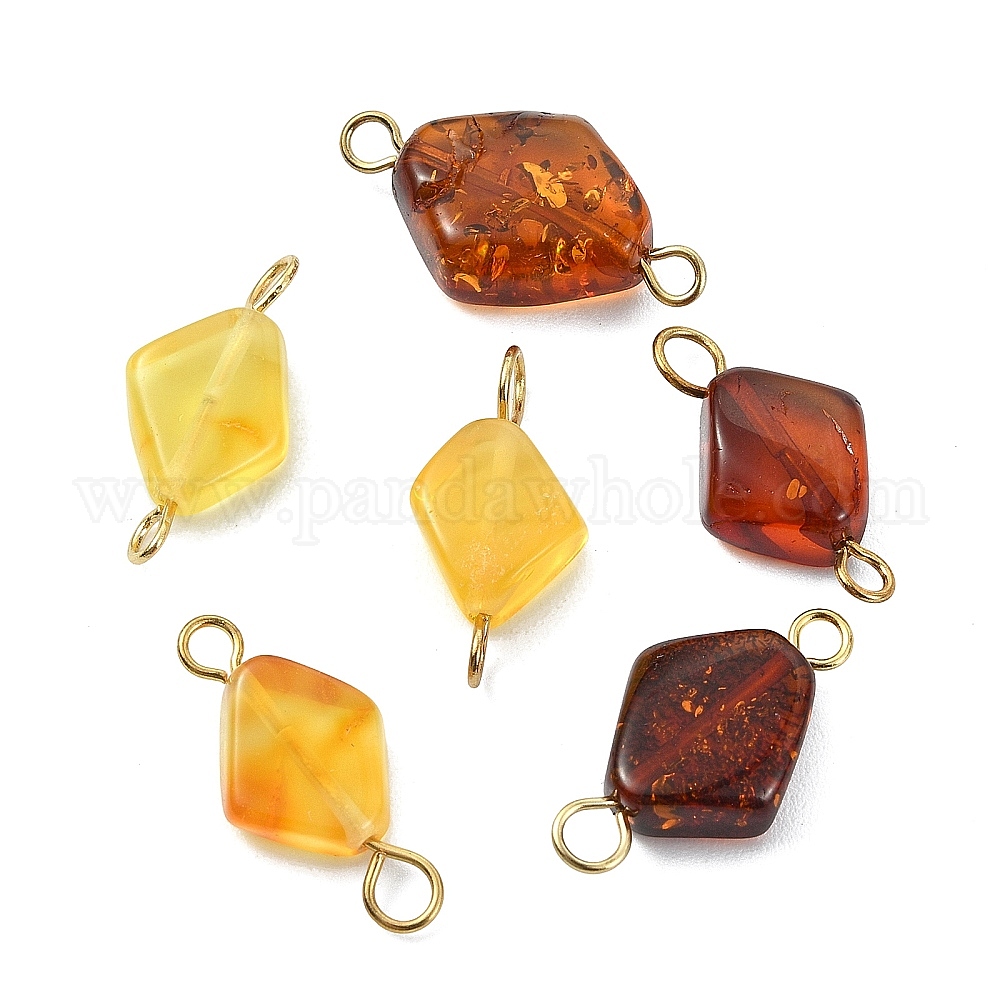 Подвески-коннекторы из натурального янтаря, ромб с 304 цветными петлями из нержавеющей стали, золотые