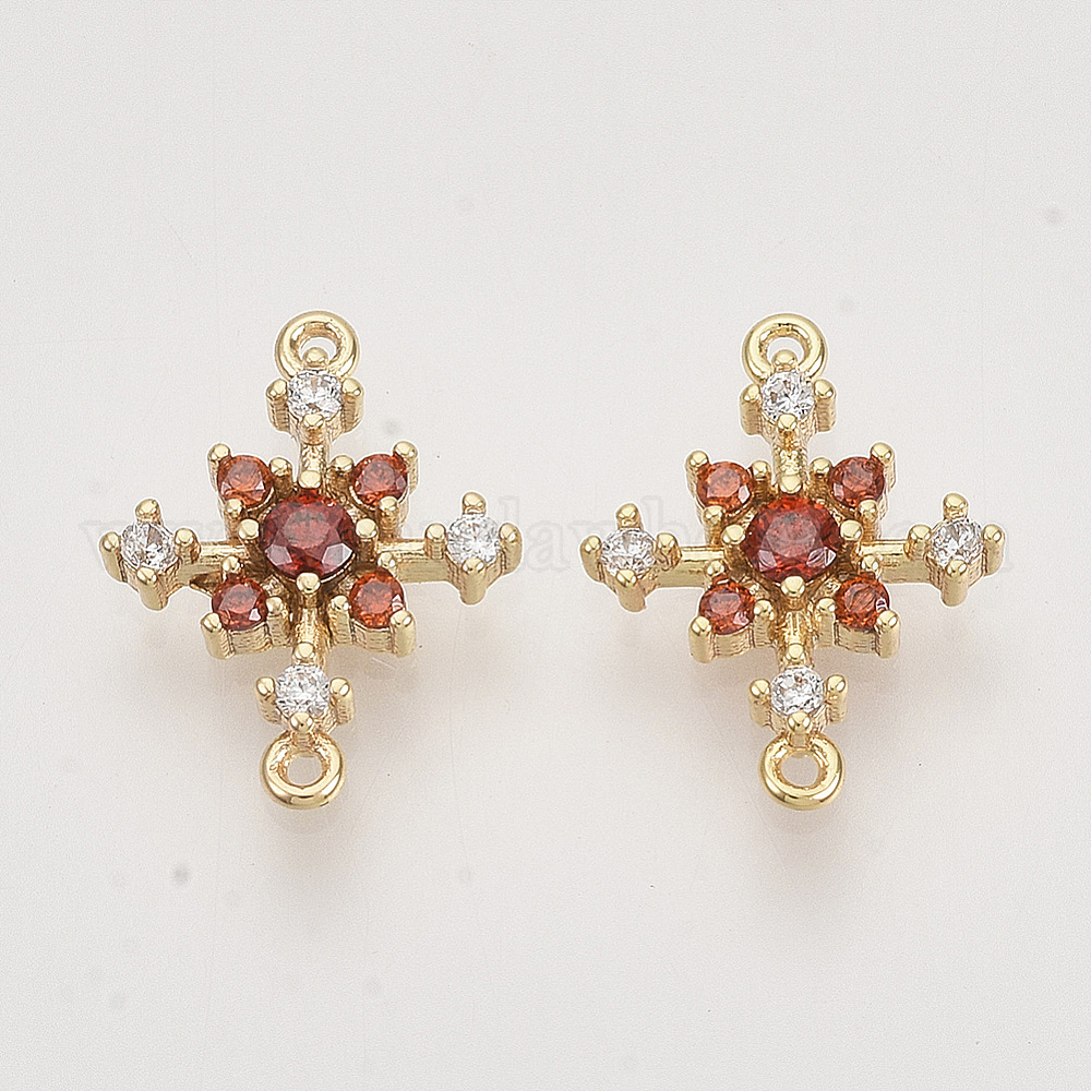 Латунные соединители с кубическим цирконием, реальный 18 k позолоченный, снежинка, без никеля