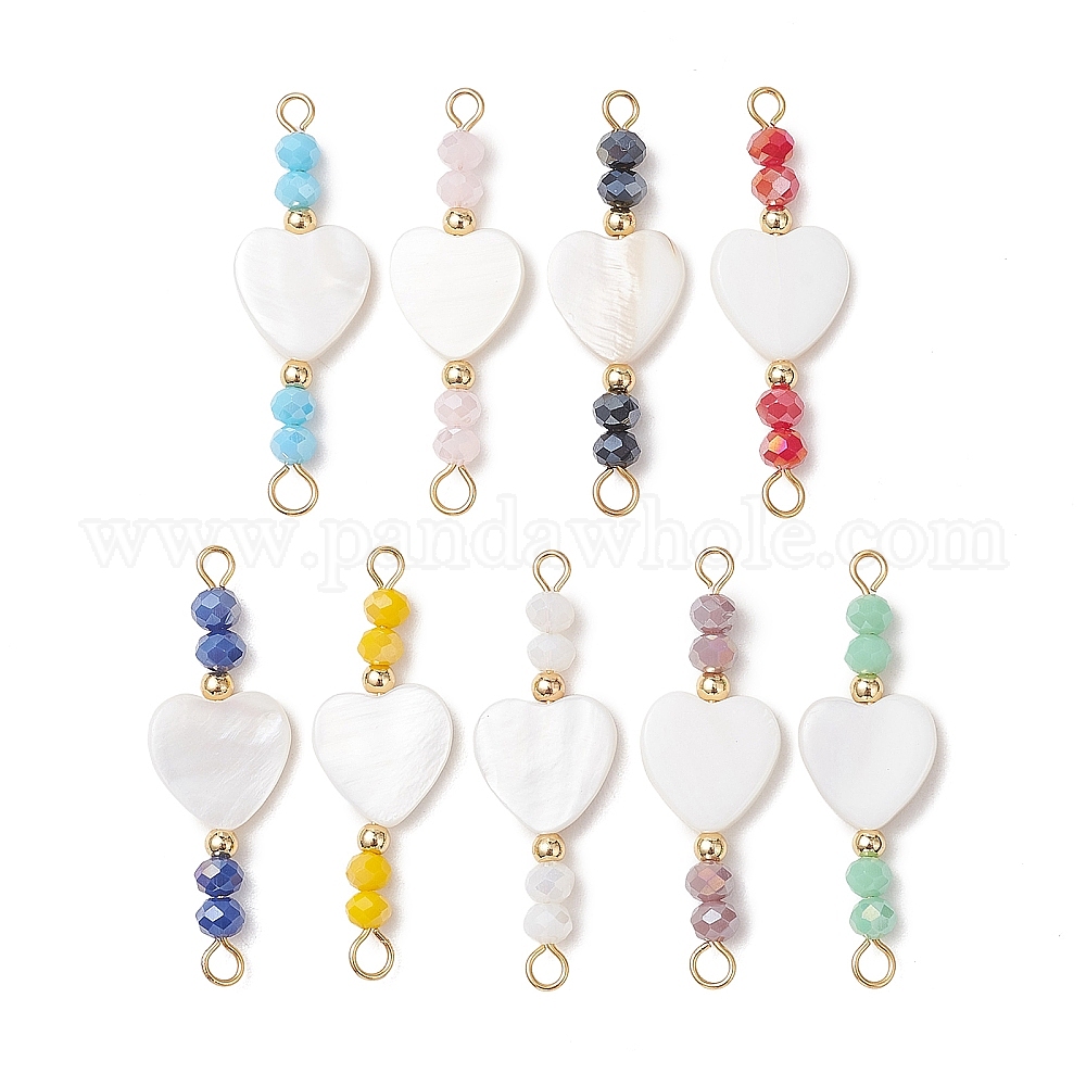 9шт. 9 цвета, натуральные пресноводные ракушки и гальванизированные стеклянные бусины, соединительные подвески, шарма сердца, с латунными бусинами и 304 штифтами из нержавеющей стали.