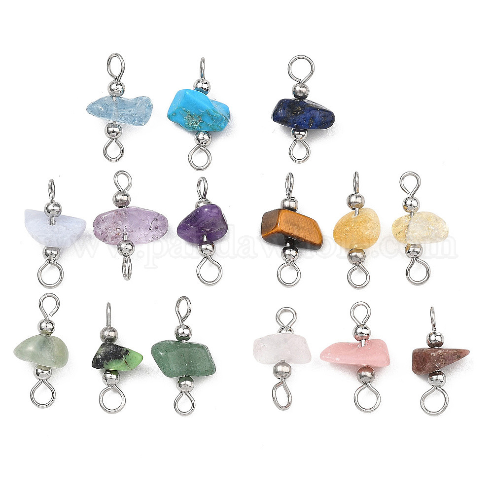 15 шт. 5 цвета: натуральные и синтетические смешанные драгоценные камни, звенья, соединительные подвески, с 304 петлями из нержавеющей стали, разноцветные, смешанные окрашенные и неокрашенные