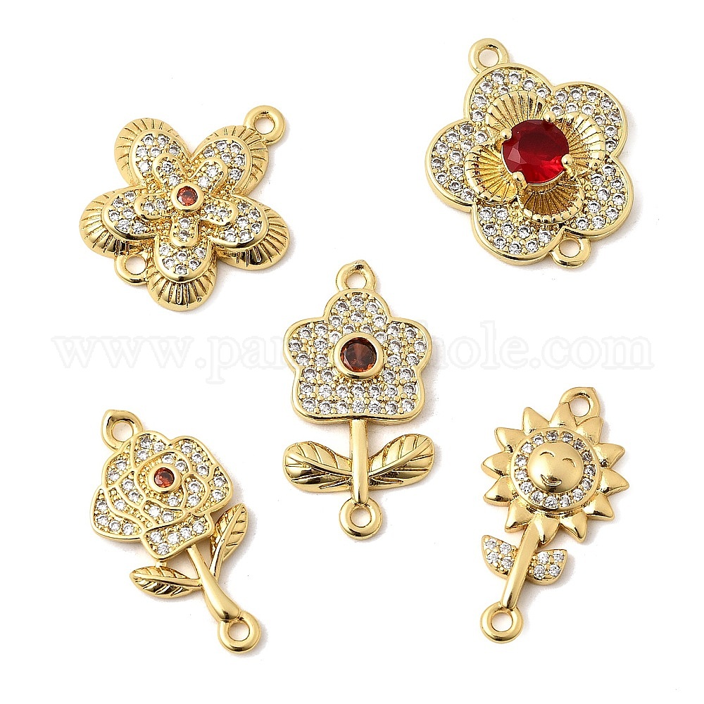 Подвески-цветочки с микропаве из латуни и прозрачным кубическим цирконием, долговечный, без кадмия и без свинца, стойки покрытие
