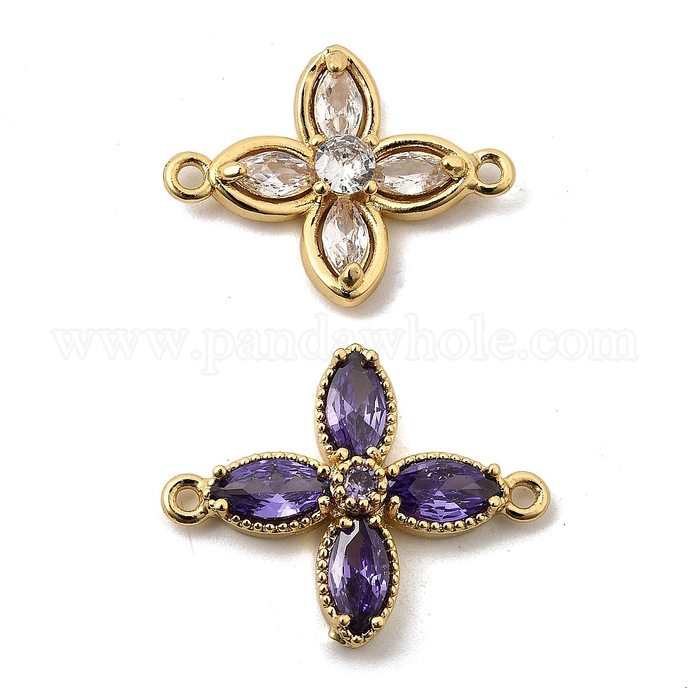 • Фиолетовый Латунные подвески-конструкторы в виде цветка с инкрустацией кубическим цирконием 4-лепестками, долговечный, без кадмия и без свинца, стойки покрытие, реальный 18 k позолоченный, фиолетовые, 18x23x4 мм, отверстия : 1.4 mm и 1.6 мм