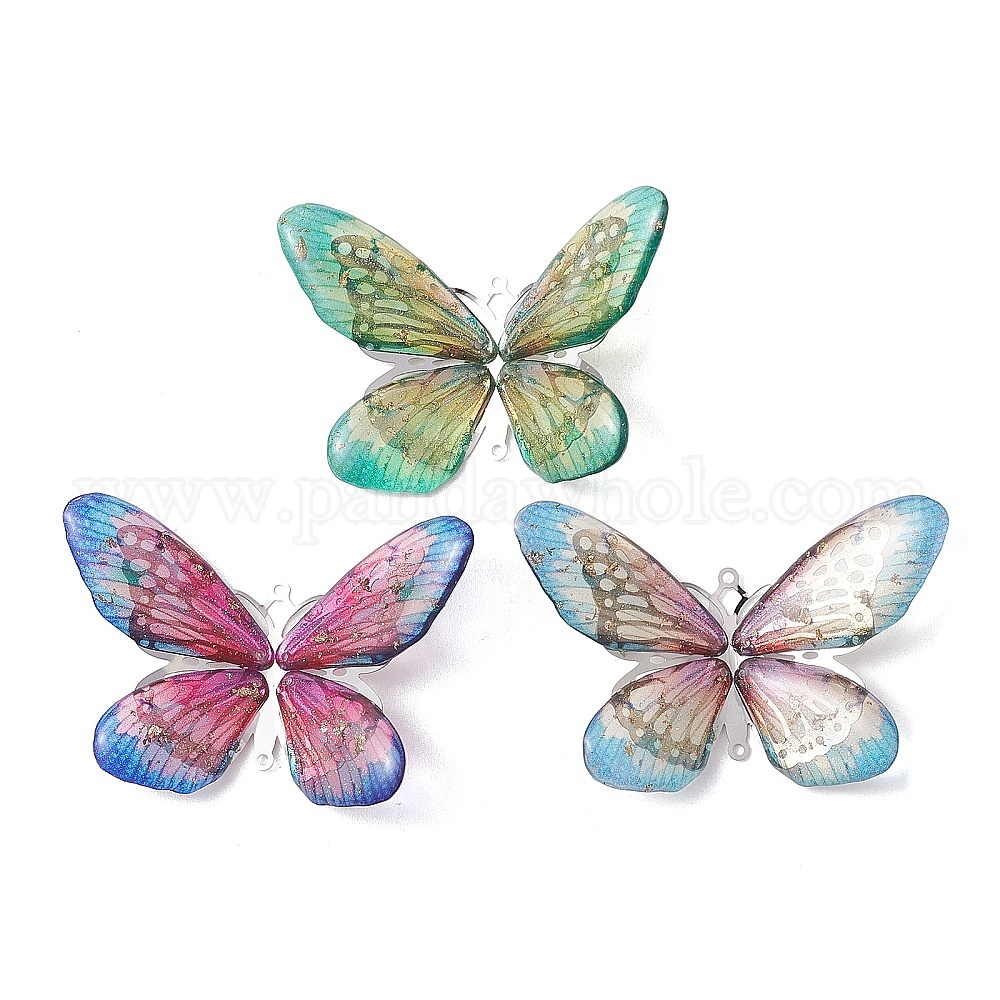 3шт. 3 цвета эпоксидной смолы и 304 нержавеющая сталь 3 D-образные подвески-бабочки, цвет нержавеющей стали