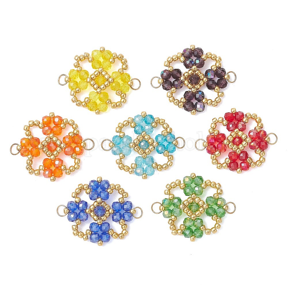 Подвески-цветы из гальванически покрытых стеклянных бусин, с 304 кольцами из нержавеющей стали, реальный 18 k позолоченный