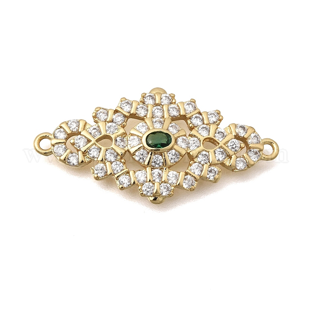 Латунные подвески-шармы в виде ромбов с филигранным узором из прозрачных и зеленых кубических цирконий., без кадмия и без свинца, стойки покрытие, долговечный