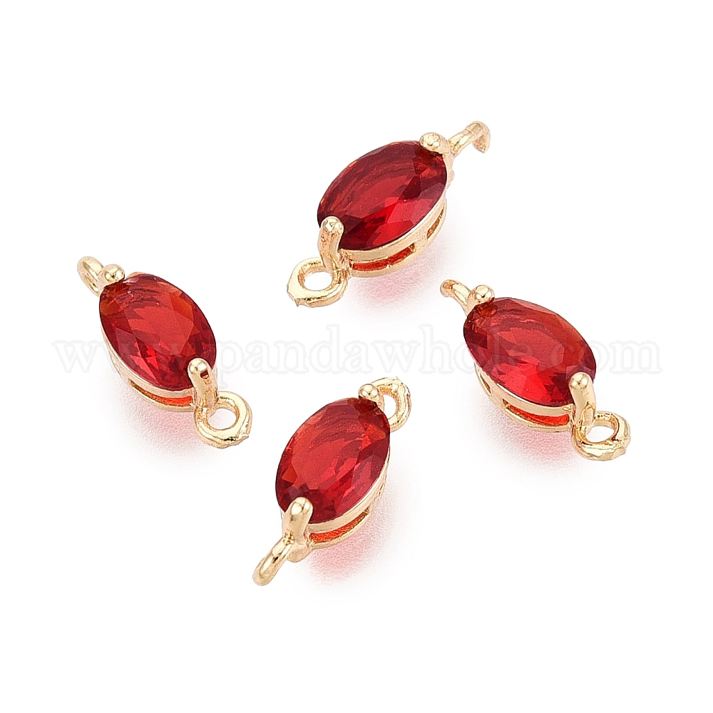 • Красный Латунные стеклянные граненые овальные звенья-подвески, золотой свет, красные, 11~11.5x4x4 мм, отверстие : 1~1.6 мм