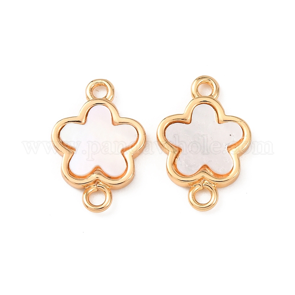 • Цветок Соединительные подвески из латуни и натуральной белой ракушки, реальный 18 k позолоченный, цвет морской раковины, цветок, 14.5x10x1.5 мм, отверстие : 1.6 мм