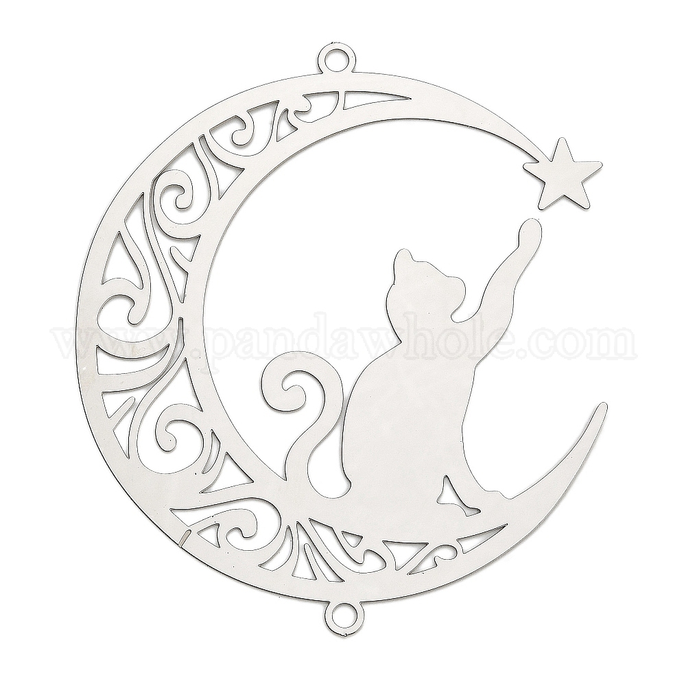 201 подвески для соединителей из нержавеющей стали, вырезанные лазером, ссылки в форме лунного кота, гравированные металлические украшения, не тускнеет