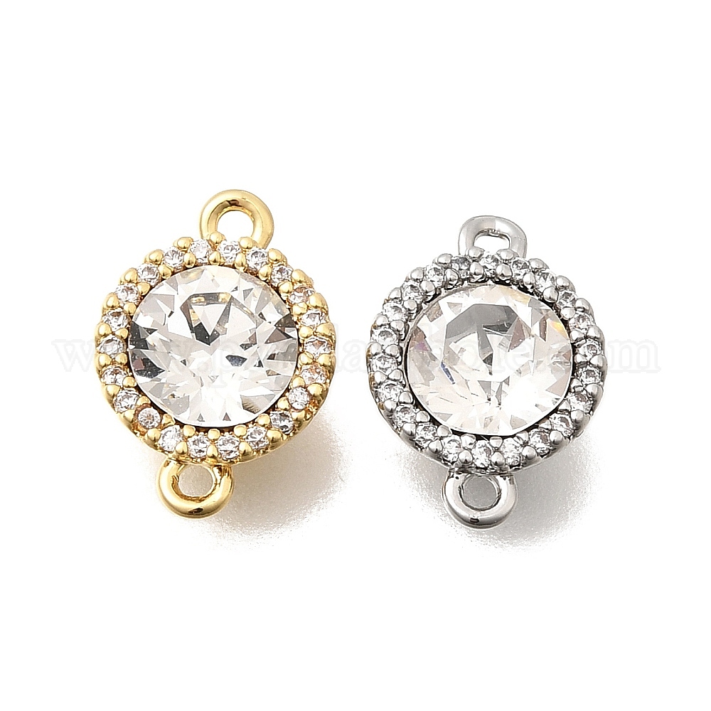 Латунные звенья с инкрустацией из прозрачного кубического циркония и стекла, подвески с плоским круглым разъемом