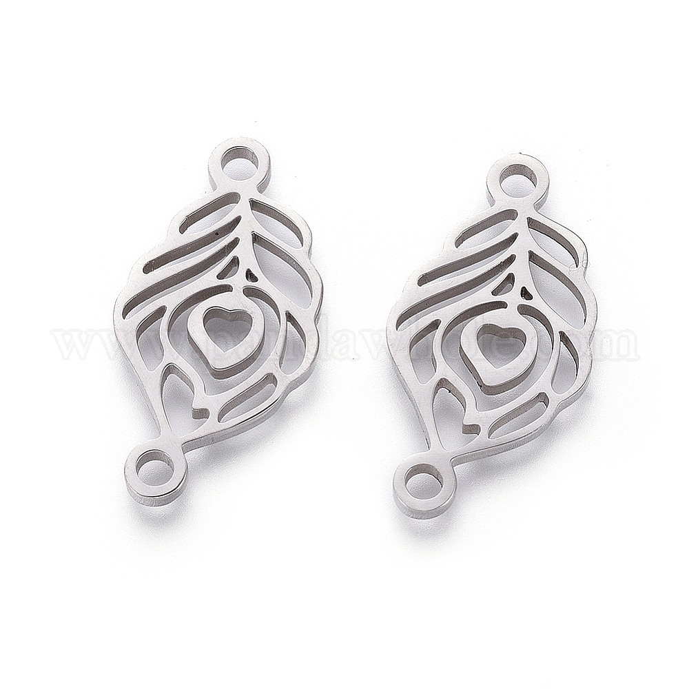 • Нержавеющая Сталь Цвет Устойчивы к потускнению 201 звенья из нержавеющей стали, ручная полировка, перо павлина, цвет нержавеющей стали, 22x11x1.50 мм, отверстие: 1.8 мм