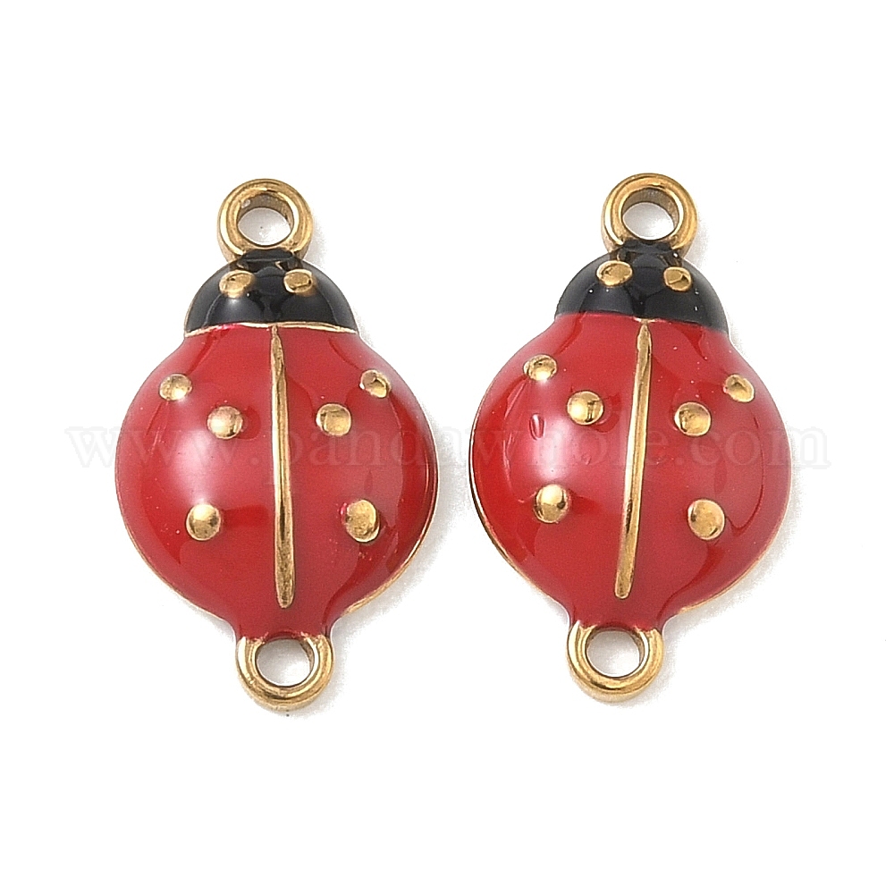 304 Подвески-коннекторы в виде божьих коровок из нержавеющей стали с красной эмалью, ионное покрытие (ip)