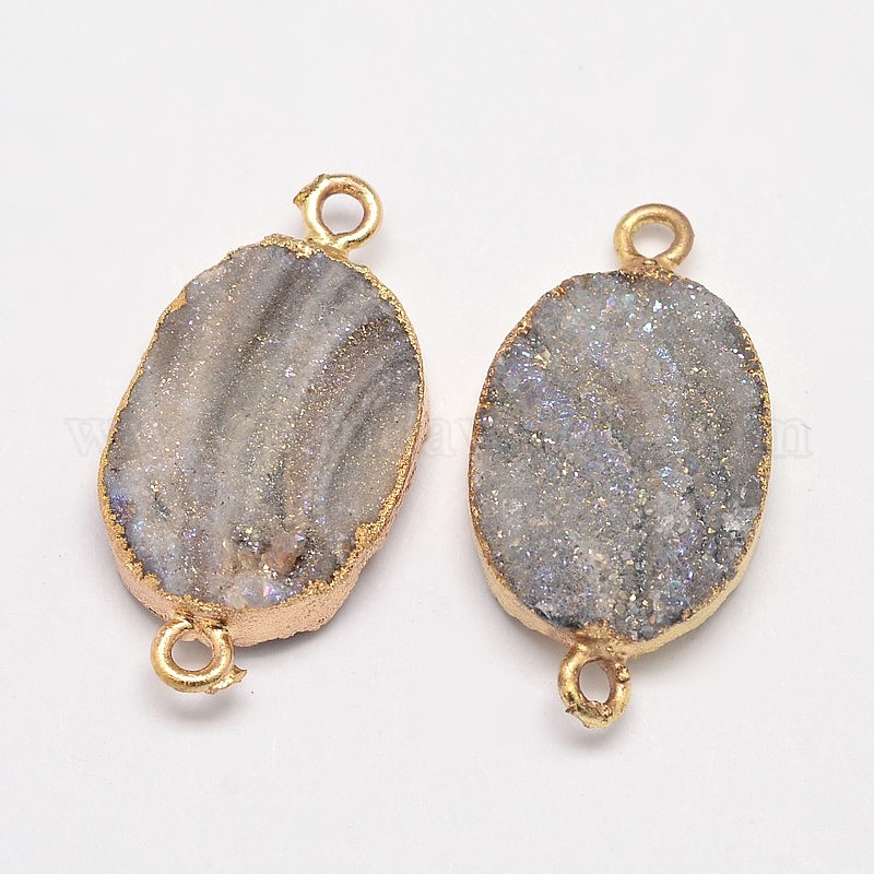 Овальные соединители звенья агата натуральные друзы, с эко-фурнитурой из латуни золотистого цвета, 26~28x15x5~7 мм, отверстие : 2 мм