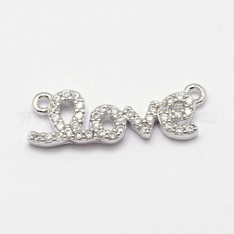 Слово любовь латунь микро проложит класс Aaa кубического циркония ссылки, без кадмия, без никеля и без свинца, 6x20x2 мм, отверстие : 1 мм