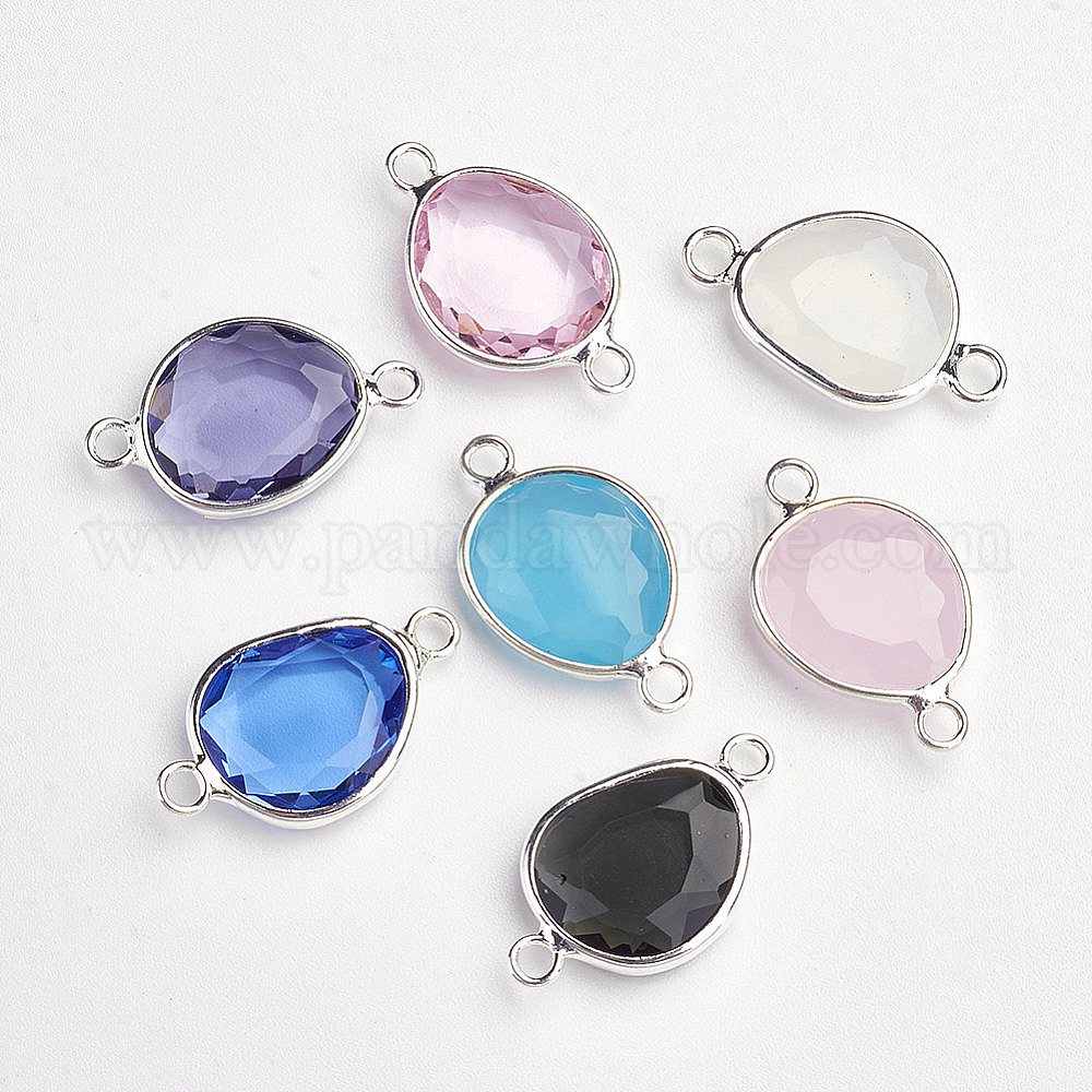 Соединители звеньев латуни стеклянные, серебряный цвет гальваническим, капля, граненые
