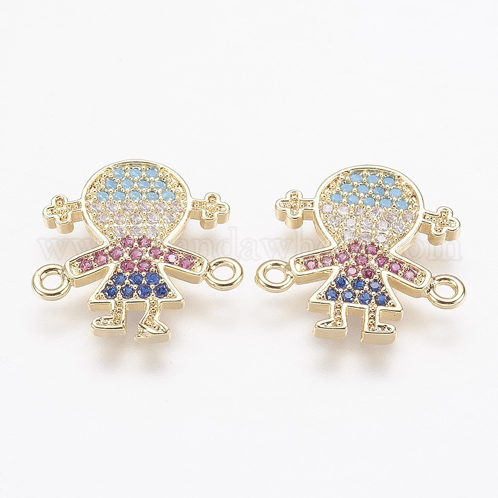 • Золотой Латунные микро проложить кубических ссылки циркония, девушка, золотые, 16x16x1.5 мм, отверстие : 1 мм