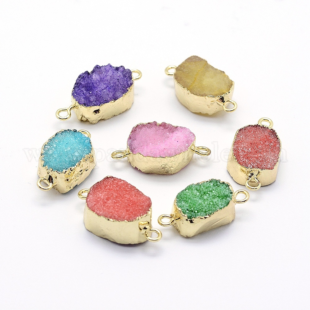 Соединители из натурального и гальванического агата, с латунной фурнитурой , овальные, золотые