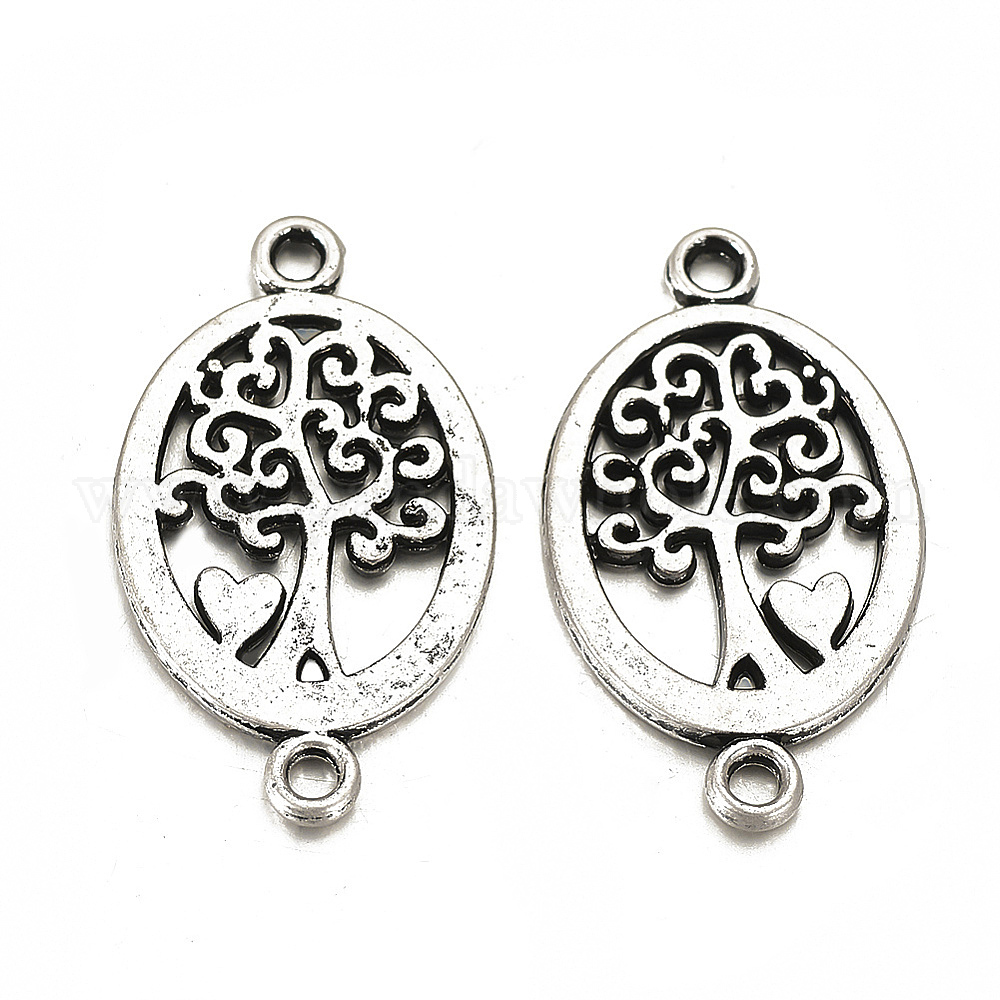Звенья / разъемы из сплава в тибетском стиле, без кадмия и без свинца, матовый стиль, овал с дерева жизни