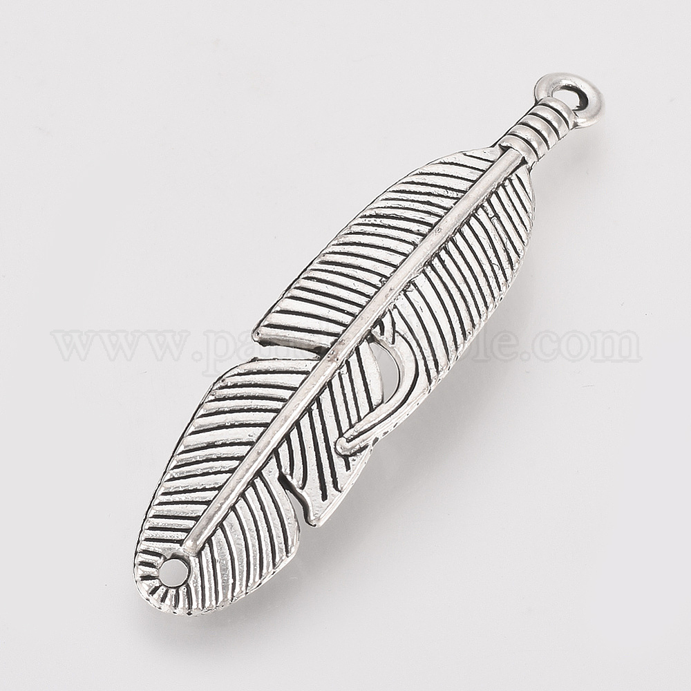 Звенья / разъемы из сплава в тибетском стиле, перо, без кадмия и без свинца (00RH1Q)