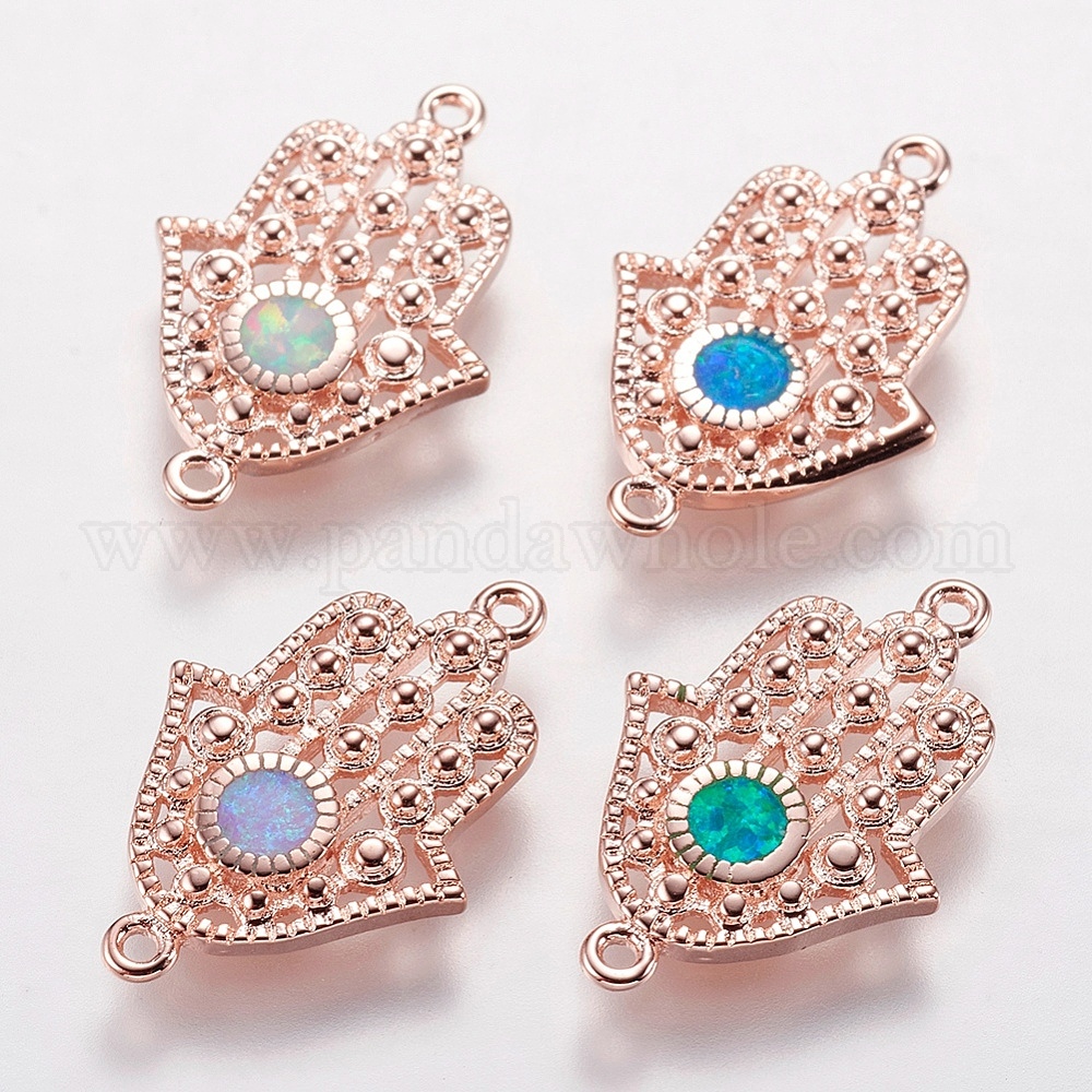 Соединители латунные звенья, с синтетическим опалом, hamsa рука / рука fatima / рука miriam