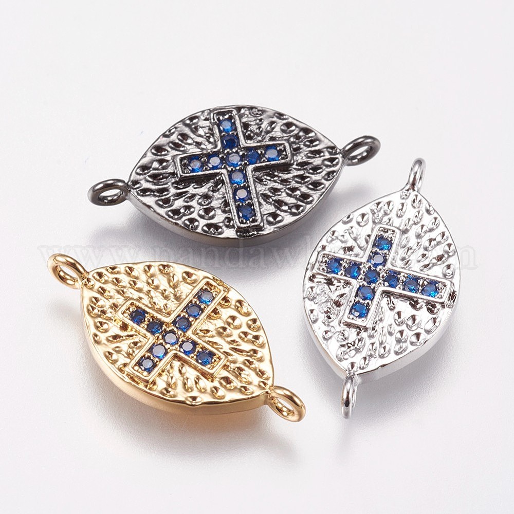 Латунные микро проложить кубических ссылки циркония, конский глаз с крестом, синие