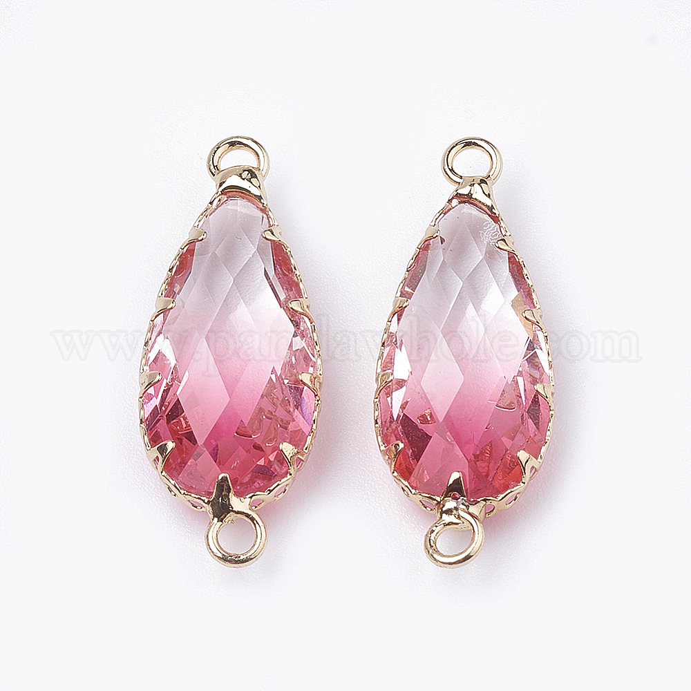К 9 соединители стеклянные звенья, имитация турмалина, с фурнитурой латунной золотого тона, граненые, капля