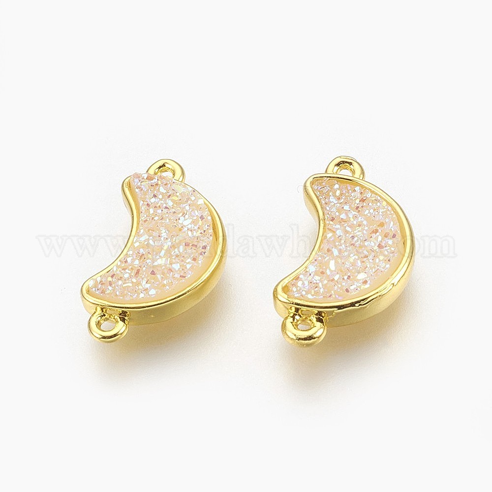 • Бежевый Разъемы гальванических друзы, с фурнитурой латунной золотого тона, луна, бежевые, 18.5x10x4 мм, отверстие : 1 мм